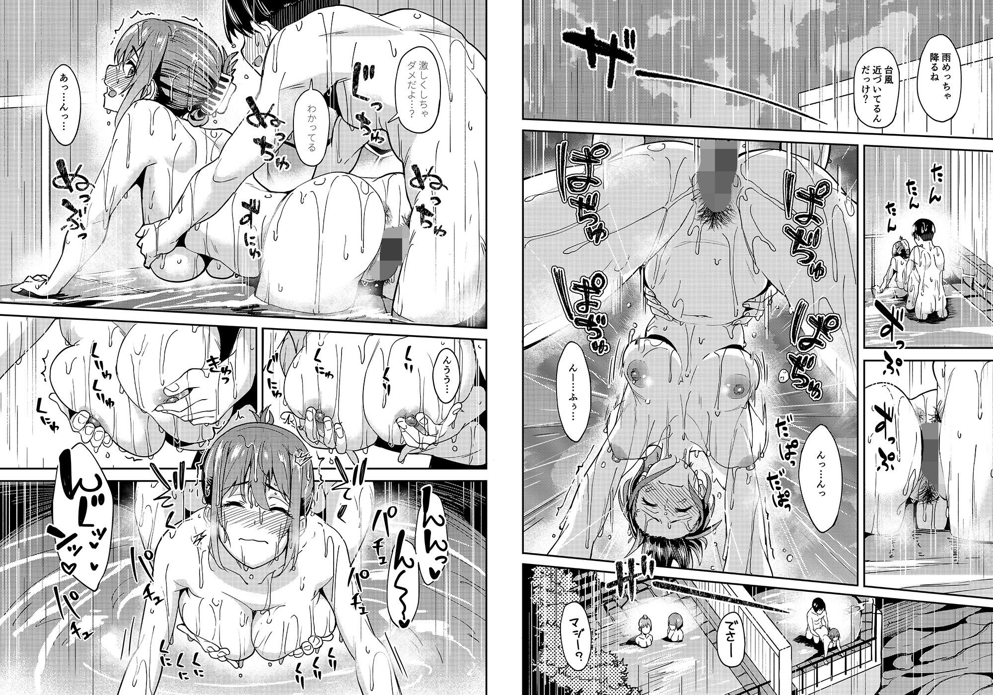 パイズリにフェラからの精液ごっくん、騎乗位にバックと攻めているところで隣の女湯に女性の声が。バレたらヤバイ状況にさらに興奮する二人、彼女に中に大量放出して互いの愛を確認するのでした